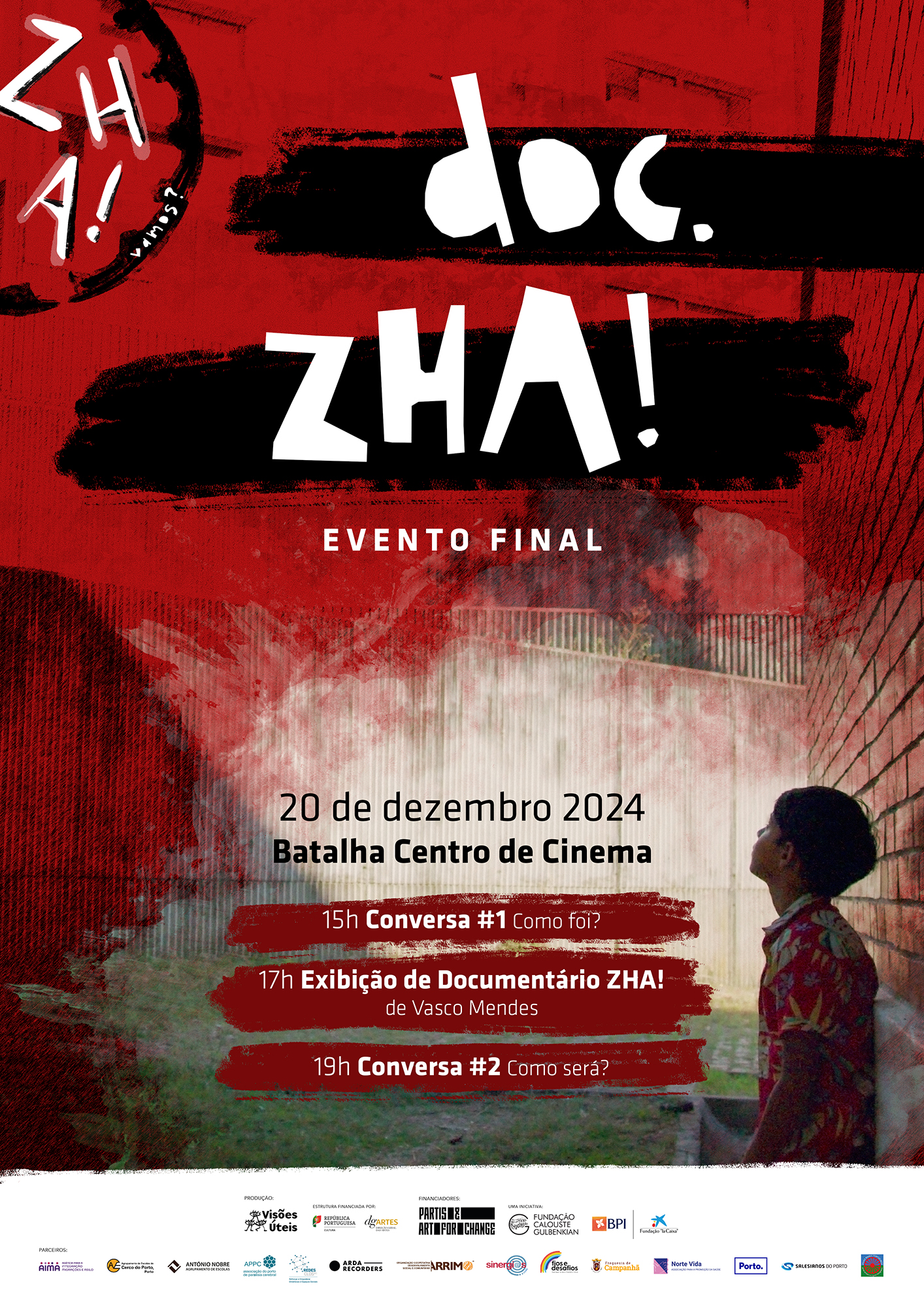 ZHA! foi o nome escolhido para este projeto PARTIS & Art for Change, financiado pelas Fundações Calouste Gulbenkian e “la Caixa”, e promovido pelo Visões Úteis em parceria com uma sólida rede de entidades educativas, culturais e sociais. Um nome que carrega em si um verbo de ação – “vá, vamos” – e que se tornou uma identidade que vestimos com orgulho sempre que nos reunimos para pensar e agir de forma colaborativa e intercultural. Ao longo de 28 meses, ZHA! cresceu para além de nós, expandindo-se pelos territórios, pelas comunidades e pelas relações que nos unem num propósito comum: promover percursos de vida mais justos, inclusivos e participativos. Este crescimento reflete-se nas inúmeras atividades que desenvolvemos em co-construção: sessões artísticas e educativas, formações interculturais, oficinas e espaços comunitários de criação, eventos de partilha e reflexões conjuntas sobre as potencialidades das artes, da cultura e da educação de rua como instrumentos de transformação social. Agora, chegados aqui ao encerramento deste ciclo, sabemos que ZHA! não termina hoje. O que construímos – as experiências, as aprendizagens e os laços formados – são alicerces para o futuro. E é a partir deste terreno (mais) fértil que continuaremos a urdir, junt@s, novos caminhos de inclusão e participação. ZHA! é mais do que um projeto: é um movimento. Vá, vamos, avancemos junt@s e com a certeza de que, assegurado o sentido de compromisso e de colaboração, podemos criar, e recriar, oportunidades para uma sociedade mais equitativa, culturalmente diversa e assente na garantia dos direitos humanos. Este (evento) final não é um ponto (final), mas sim um espaço para rememorar e celebrar, como uma espécie de vírgula que por um lado precede e por outro aponta a história que queremos continuar a escrever.